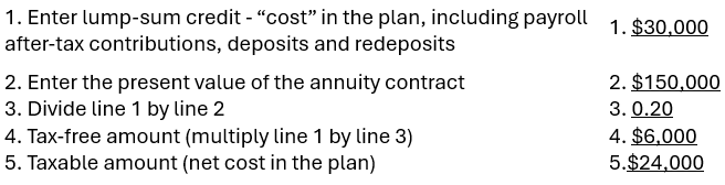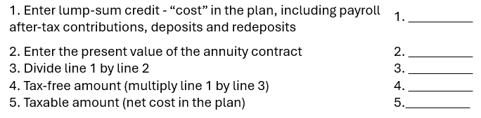 Worksheet: Computing the taxable portion of lump-sum payment under the Alternative Annuity Option